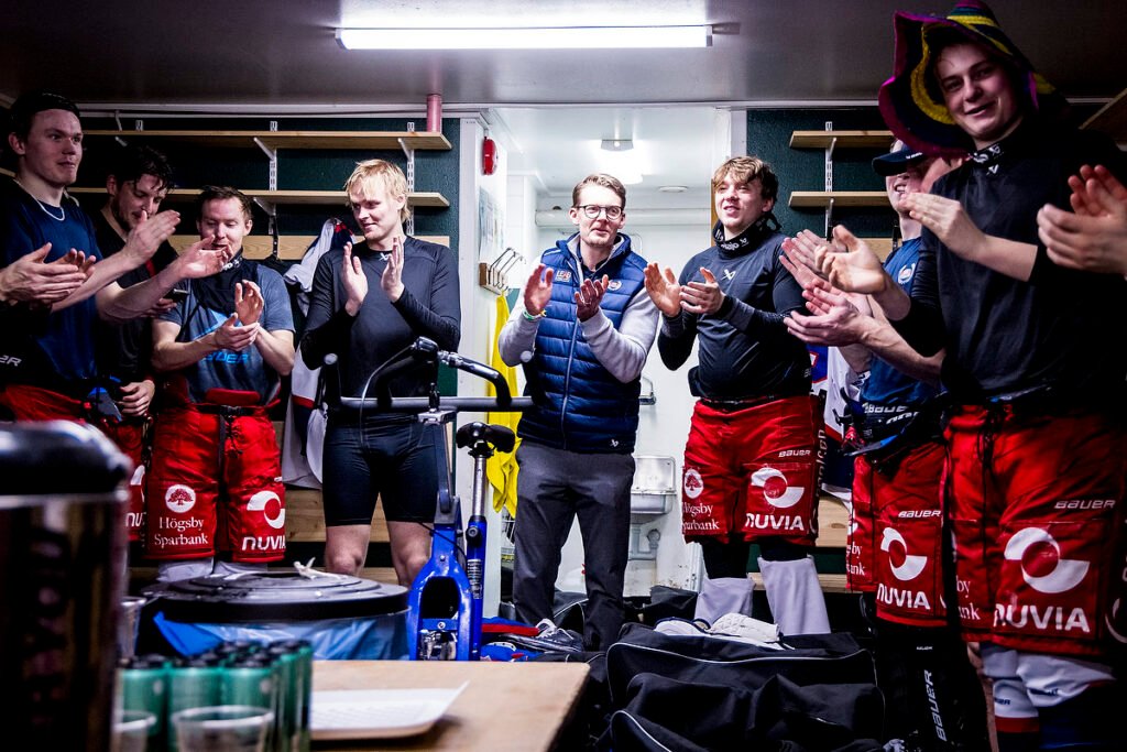 – Var det slutet? Skämt åsido. Jag hade spelat ”gubbahockey” och tycker fortfarande att det ar roligt att åka runt, passa och skjuta. Det gick till så att jag sa till ”Loddan” (Alexander Lodin i Osby IK) att jag kunde fylla ut på träningarna om det saknades folk. När jag fick frågan om att spela kom tankarna på om jag kunde klara av det. Inte för nivån utan mer om det skulle smälla igen. Men jag ville prova och jag var nervös som fan. Fullsatt i hallen i division tre då man spelade för ishallens existens. Det kändes som en VM-final.