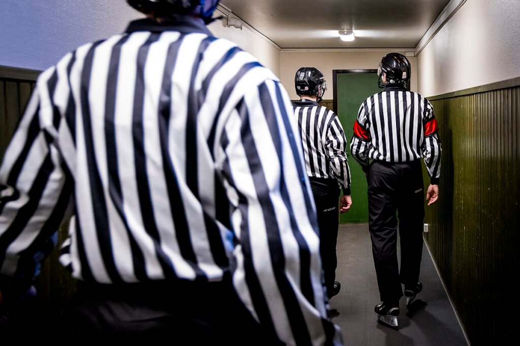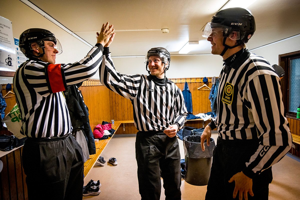 Ett Göingederby handlar om så mycket mer än tre poäng. Det omfattar två klubbars stolthet och tradition. Byars heder och prydnad. Mitt mellan dessa två block av färger står tre personer vars jobb är att se till att kärlek och hat får ha sin plats men också stävjas precist och i rätt tid. Vi tog rygg på ”zebrorna” under derbykvällen och fick lära oss att i en domartrios jobb finns slående likheter med de båda lagens.
