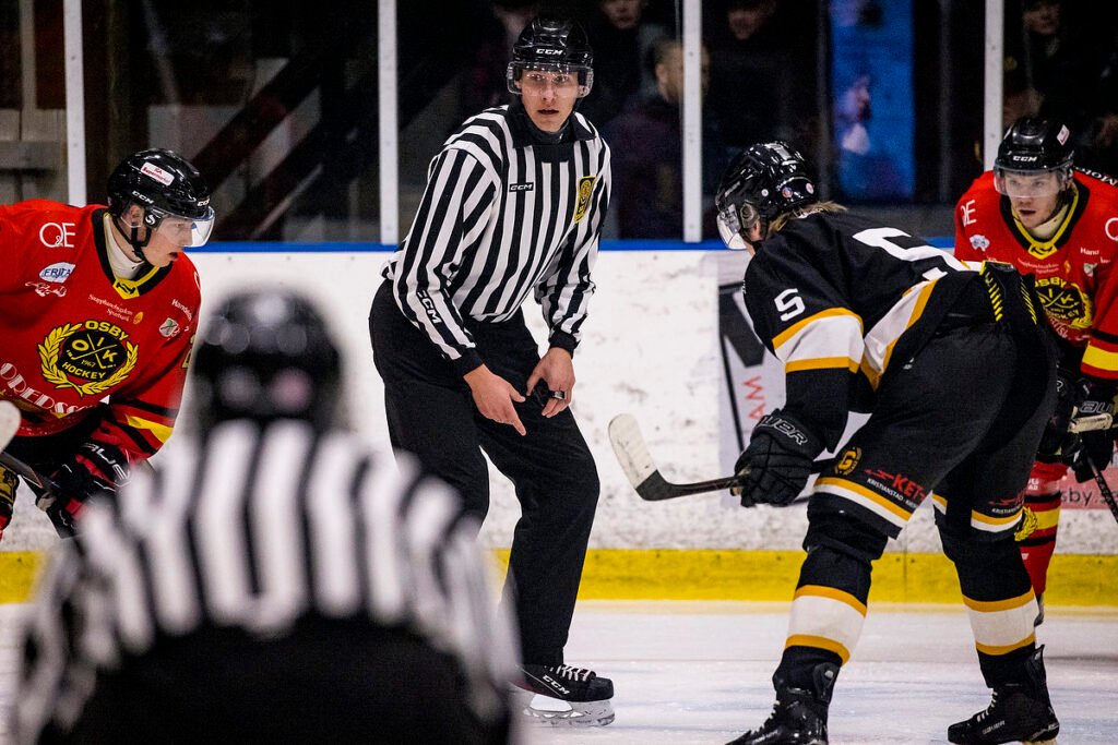 Festen drar igång inför 819 entusiastiska personer i en kokande Hangar. Derbykänslorna på planen lyser med sin frånvaro inledningsvis. Men på läktaren är det ös, särskilt eftersom OIK tar initiativet och Robin Johansson gör ledningsmålet som står sig perioden ut. Linjemännen Forne/Karlsson hjälper sin huvuddomare med situationer och de agerar som ett team på ett förtjänstfullt sätt.