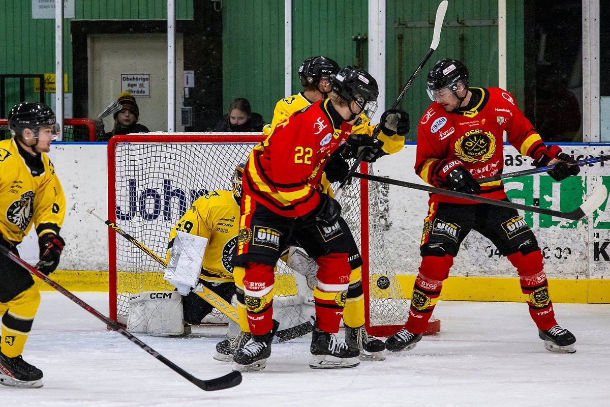 I den tredje perioden såg Osby ut att vara på väg mot en poäng när Daniel Petersson kvitterade till 3–3 med drygt fem minuter kvar. Förhoppningen om förlängning släcktes dock snabbt. Ett onödigt utvisningsläge gav Falkenberg chansen i powerplay och spel fem mot tre, och gästerna kunde avgöra till 4–3.