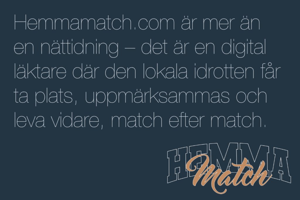 Hemmamatch bevakar lokal hockey och fotboll med hjärtat i närområdet. Har du tips om matcher, nyheter eller händelser vi borde uppmärksamma? Vill din förening synas, eller är du intresserad av samarbete eller annonsering?